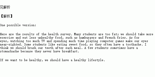 你所在的班级正在开展以“A Healthy Lifestyle”为主题的活动。假设你是班长,你调查了同学们的健康状况,并且列出了调查表。请你根据调查表在活动中发言,倡导同学们要养成健康的习惯,并且给出一些建议。词数70左右,开头已给出,不计入总词数。