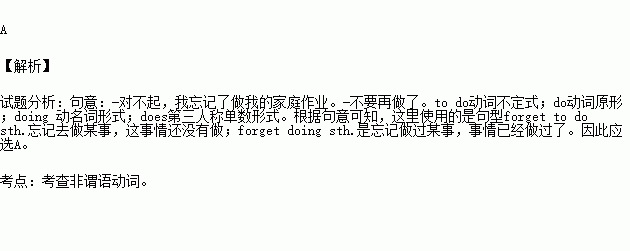 --Sorry, I forget ____ my homework . --Don’t do that again.