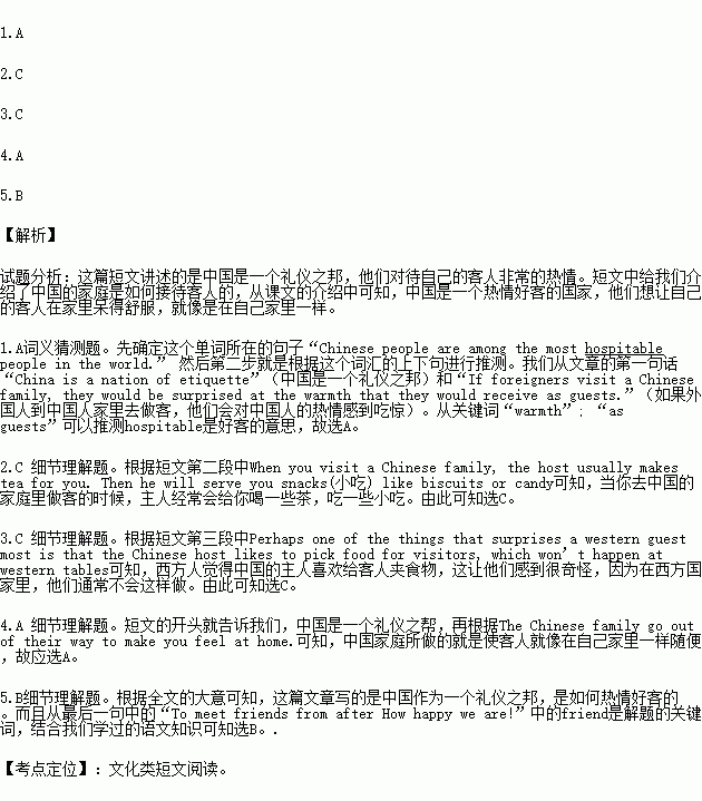China is a nation of etiquette(礼仪). Chinese people are among the most hospitable people in the world. If foreigners visit a Chinese family, they would be surprised at the warmth that they would receive as guests.