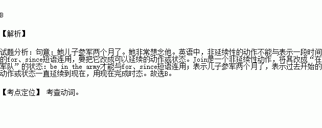 Her son _____ the army for two months. She misses him very much.