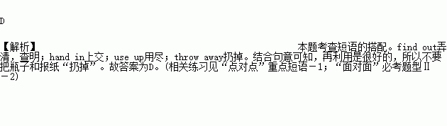(2014江西)Recycling is good,so don’t________bottles or newspapers.