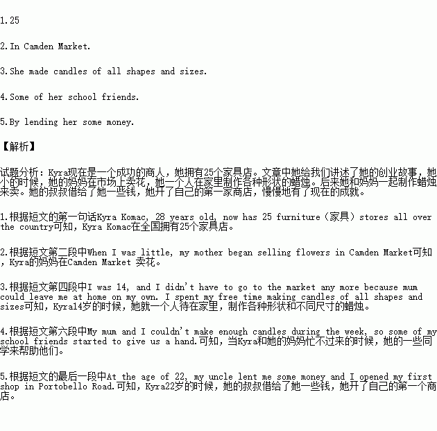 Kyra Komac, 28 years old, now has 25 furniture(家具)stores all over the country. The new store, in London's Camden High Street, takes her back to where it all started. She tells us about how the business began.