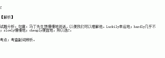 A. luckily B. hardly C. slowly D. cheaply