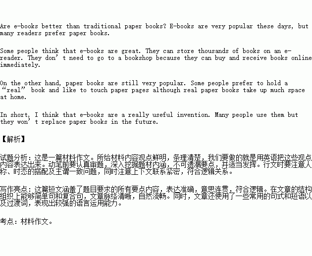 Are e-books better than traditional paper books? E-books are very popular these days, but many readers prefer paper books.