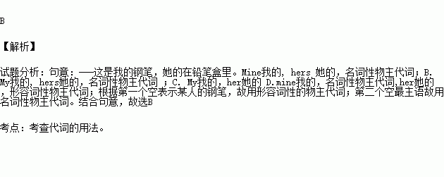A. mine, hers B. my, hers C. my ,her D.mine,her
