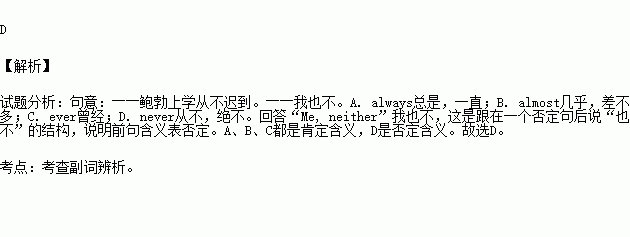 A. always B. almost C. ever D. never