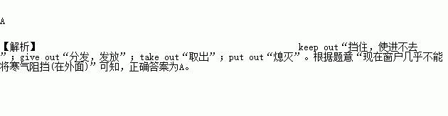 A.keep out B.give out C.take out D.put out