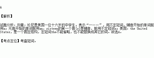 Jane is ________ 16-year-old high school student in ________ United States.