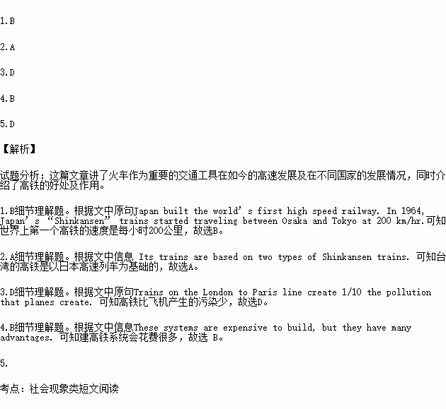 Trains have long been an important form of transportation. Yet they have changed a lot since 1804, when the first train moved at 8 km/hr. Today’s high speed trains can go 300 km/hr or faster. Besides their speed, they have many advantages over other transportation types.