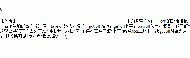 (2014河南)This bus doesn’t go to the train station.I’m afraid you’ll have to________at the library and take the A52.