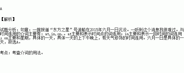 —It’s reported that the Oriental Star Cruises (“东方之星”号游船)sank_______June 1st, 2015.