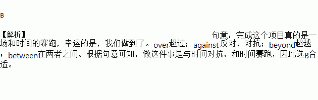 It was a real race ______ time to get the project done. Luckily, we made it.