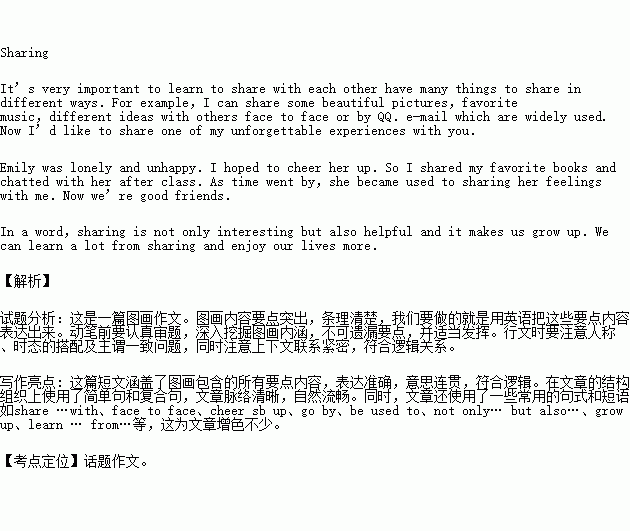 学会分享很重要。你有哪些东西要分享?可采取哪些方式分享?请根据图示内容,结合自身的一次经历,写一篇短文,并阐述分享的意义。