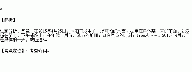 A terrible earthquake happened in Nepal _____ April 25th, 2015.
