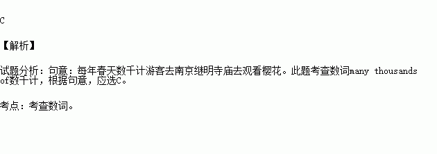 Every spring, _____ tourists go to Nanjing Jiming Temple to watch the Flowering Cherries(樱花).