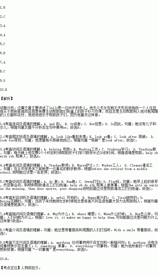 Sally is eighty-six years old. She has no sons daughters. Her husband died ten years ago. But she didn’t move into a nursing home. She would like to herself every day.