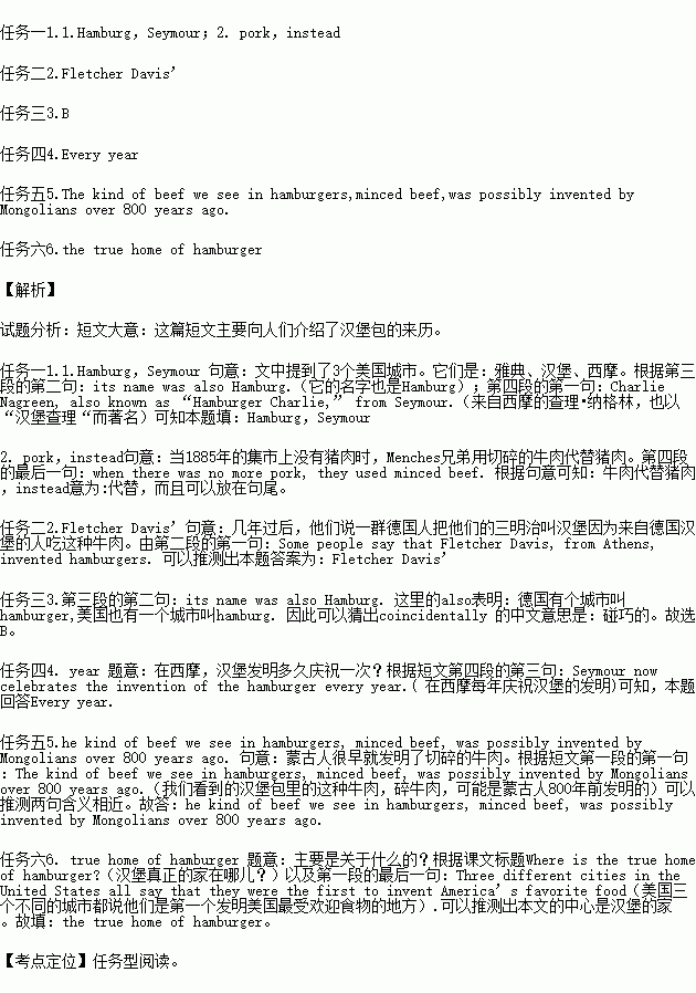 任务五5.请从文中找出与Mongolians possibly invented minced beef a long time ago. 意思相近的句子。