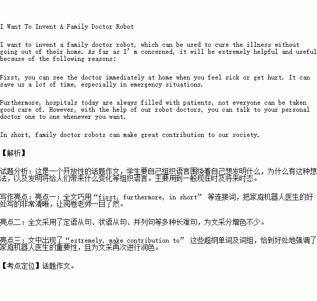 (以“我想要发明________”为题,写一篇不少于60个词的短文,标点符号不占格)
