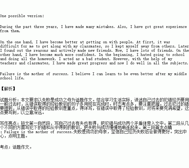 ʧ°ÜÊdzɹ¦Ö®Ä¸¡£ÔÚ¹ýÈ¥µÄ³õÈýÉú»îÖУ¬ÄãÊÇ·ñ·¸¹ý´íÎó²¢´ÓÖеõ½Á˱¦¹óµÄ¾ÑéÓë½Ìѵ£¬´Ó¶øÈ¡µÃ½ø²½£¿ÏÖÔÚÇëÄã̸̸Äã×Ô¼ºÔÚ´íÎóÖÐѧµ½µÄ¶«Î÷¡£