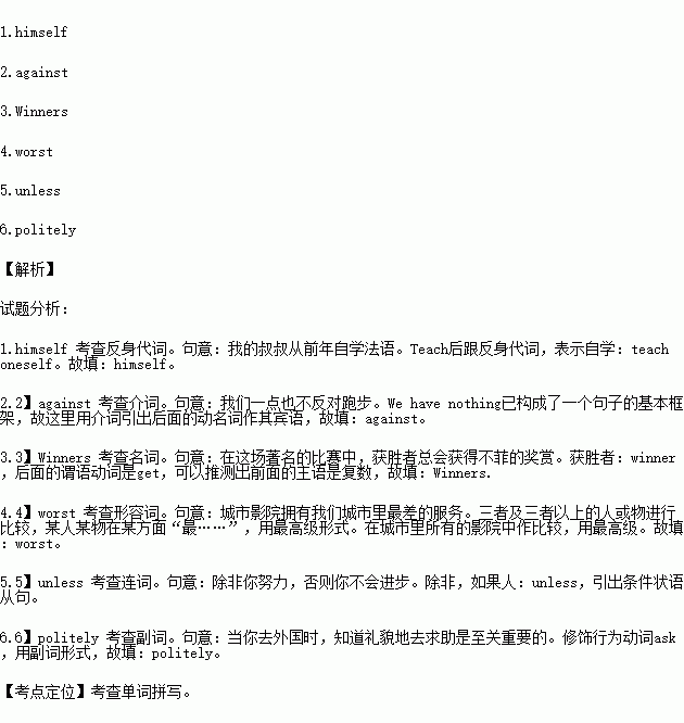 1.My uncle has taught (自己)French since the year before last.