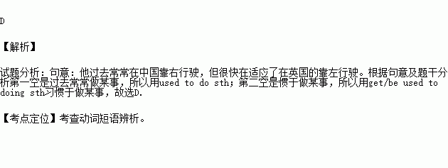 Li Ming used________ on the right in China, but he soon got used ________ on the left in England.