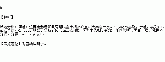 A. enjoy B. mind C. keep D. finish