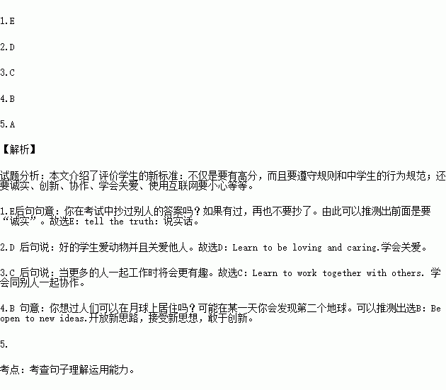 Now people use a new way to decide who are the top students in school. The best students not only get high marks, but also follow the rules and the behavior (行为) for middle school students. Here are some of the new rules and standards (标准).