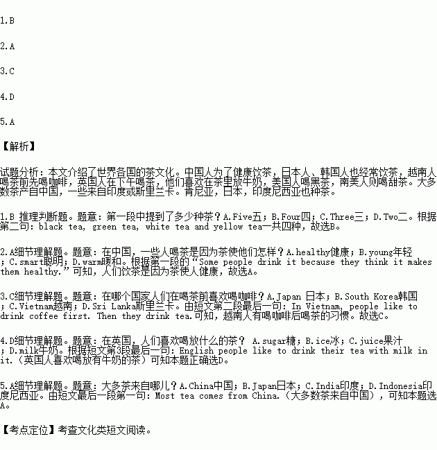 People drink a lot of tea in Japan. People drink a lot of green tea in South Korea, too. In Vietnam, people like to drink coffee first. Then they drink tea.