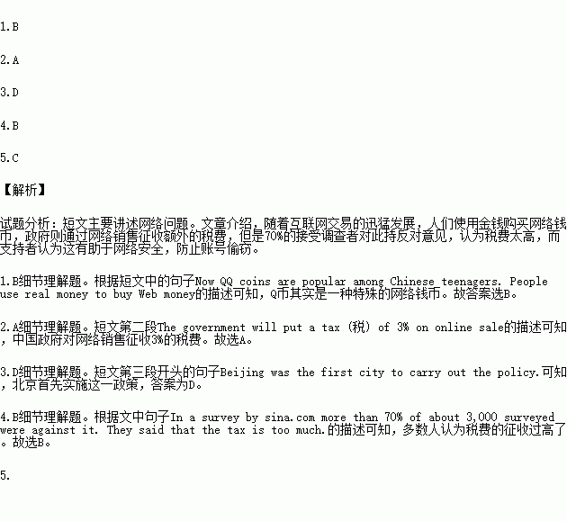 The government will put a tax (税) of 3% on online sales. For example, if QQ users pay 100 yuan for 110 QQ coins, they will have to spend 103 yuan in the future. The extra (额外的) three yuan is tax.