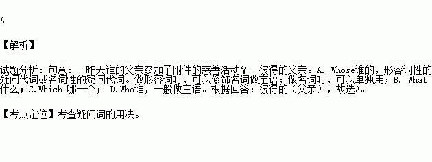 --______ father took part in the charity activity in the neighbourhood yesterday ?