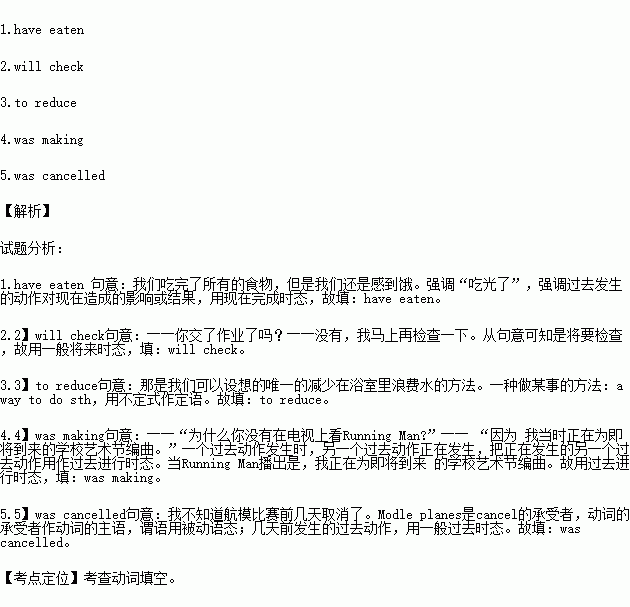 用括号内所给动词的正确形式填空(共5题,每题1分,满分5分)