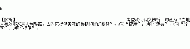 (2013东营)The local people like that Italian restaurant because it________both delicious food and good service.