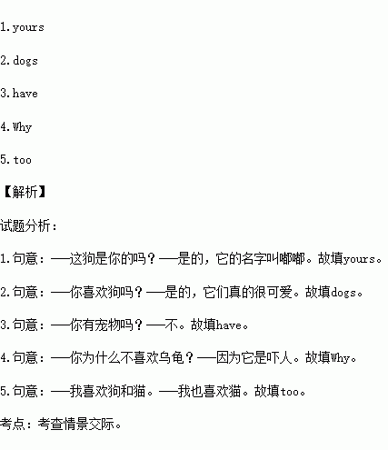 A:No.My brother has a tortoise(乌龟),but I don’t like him.