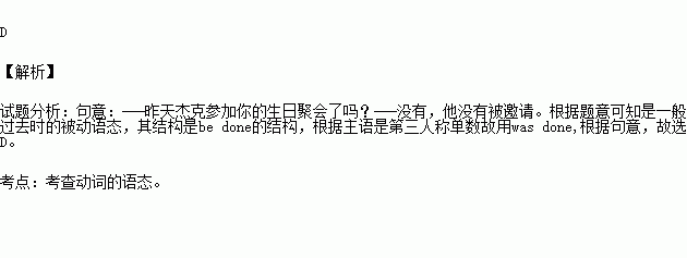 C. isn’t invited D. wasn’t invited