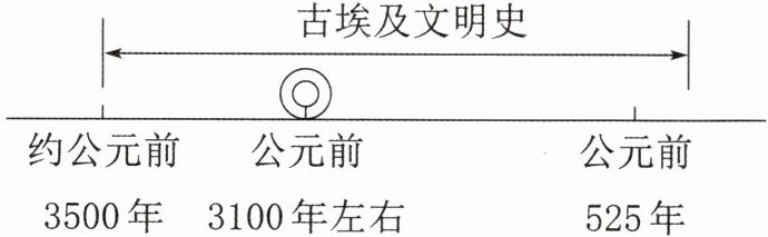 答案:【解析】:本题可根据年代尺所给时间,结合古埃及历史发展进程来判断各选项的正确性。年代尺中圆圈处对应的时间是公元前3100年左右。