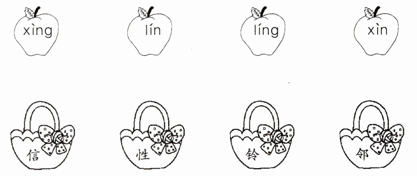 答案:xìng—性;lín—邻;líng—铃;xìn—信 。