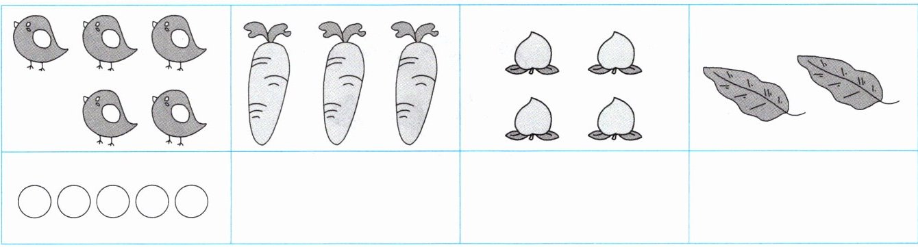 第一组是小鸟,有$5$只,下面画了$5$个“○”。