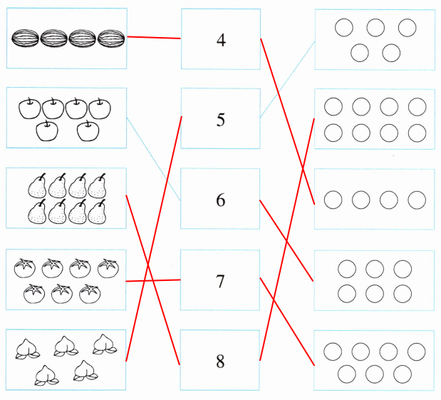 答案:本题可通过观察前面给出的示例,明确数出对应物品的数量后,画出相应数量的“○”。