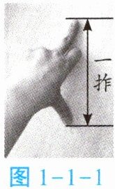 拃(zhǎ)是一个古代常用的长度比较量度。一拃是指张开的大拇指和中指两端间的距离。请你按图1-1-1所示的方法量一下你课桌的桌面有几拃长,量完后与同桌交流一下,结果是否一样?为什么?
