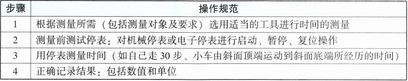 |3|用停表测量时间(如自己走30步、小车由斜面顶端运动到斜面底端所经历的时间)|