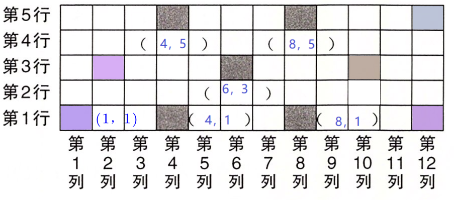 (2)请给(2,3)、(10,3)、(12,5)、(12,1)位置的瓷砖涂颜色。