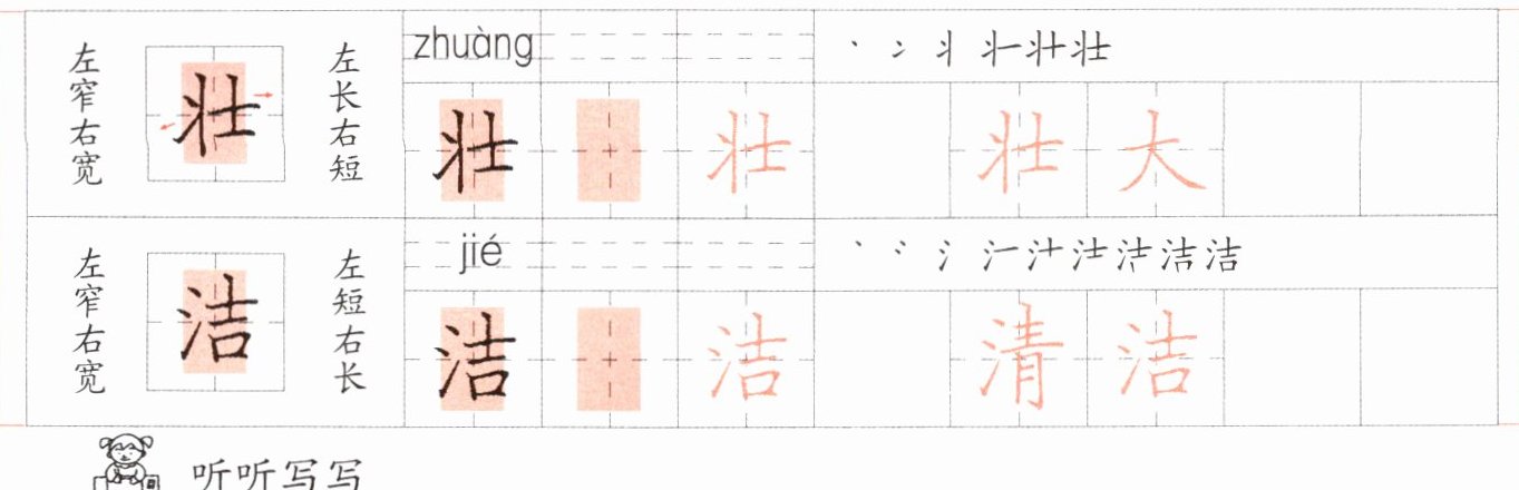 | 左窄右宽 | | 左长右短 | zhuàng| | - 丬