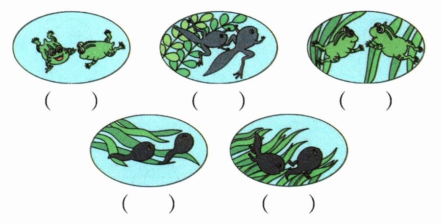 四 我能根据课文内容,给小蝌蚪的身体变化过程排序。(填序号)