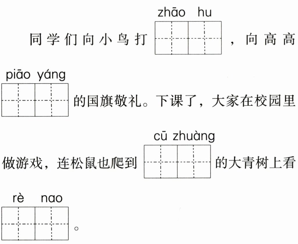 “zhāo hu”对应的是“招呼”,“打招呼”是常见的表达,符合向小鸟问候的语境。
