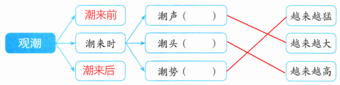 2. 作者描写潮来时的景象突出了它的哪些变化?请你连一连。