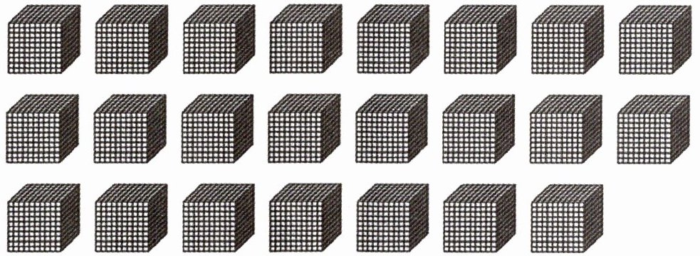 或每列有5个正方体块,一共有4列还多3个,即$4×5+3=23$(个)。
