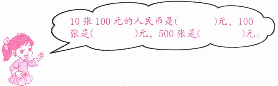 100张:因为10张是1000元,$100÷10 = 10$,$10×1000 = 10000$(元);