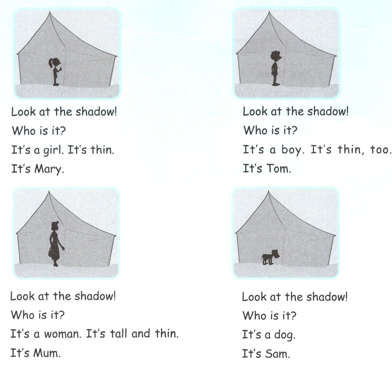 答案:【解析Ⅰ】:1. 根据文中“It's a girl... It's Mary.”可知女孩是Mary,选B。2. 由“It's a woman. It's tall and thin. It's Mum.”可知Mum又高又瘦,选C。3. 文中提到“It's a boy. It's thin, too. It's Tom.”,Tom是瘦的,选A。4. 根据“It's a man... No, it's Dad.”可知男人是Dad,选C。
