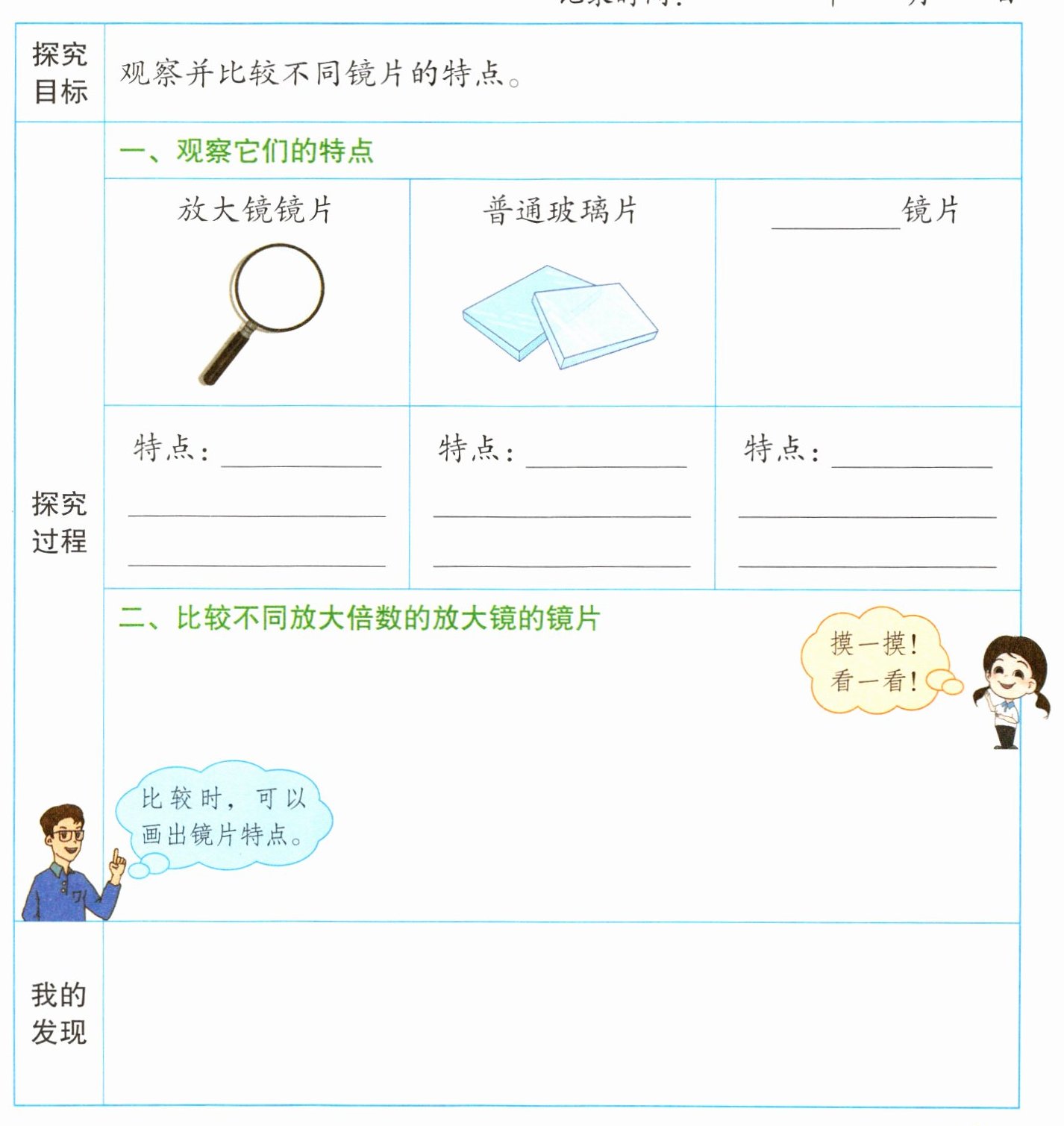 “比较不同的镜片”探究记录表