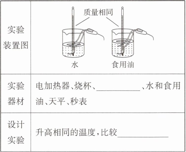 (3)选用相同的加热装置是为了加热相同的时间使物质吸收的热量相同,可以通过加热时间来反映物质吸收热量的多少。该实验的探究过程中控制了质量相同,运用了控制变量法;通过加热时间反映吸收热量的多少,还运用了转换法。